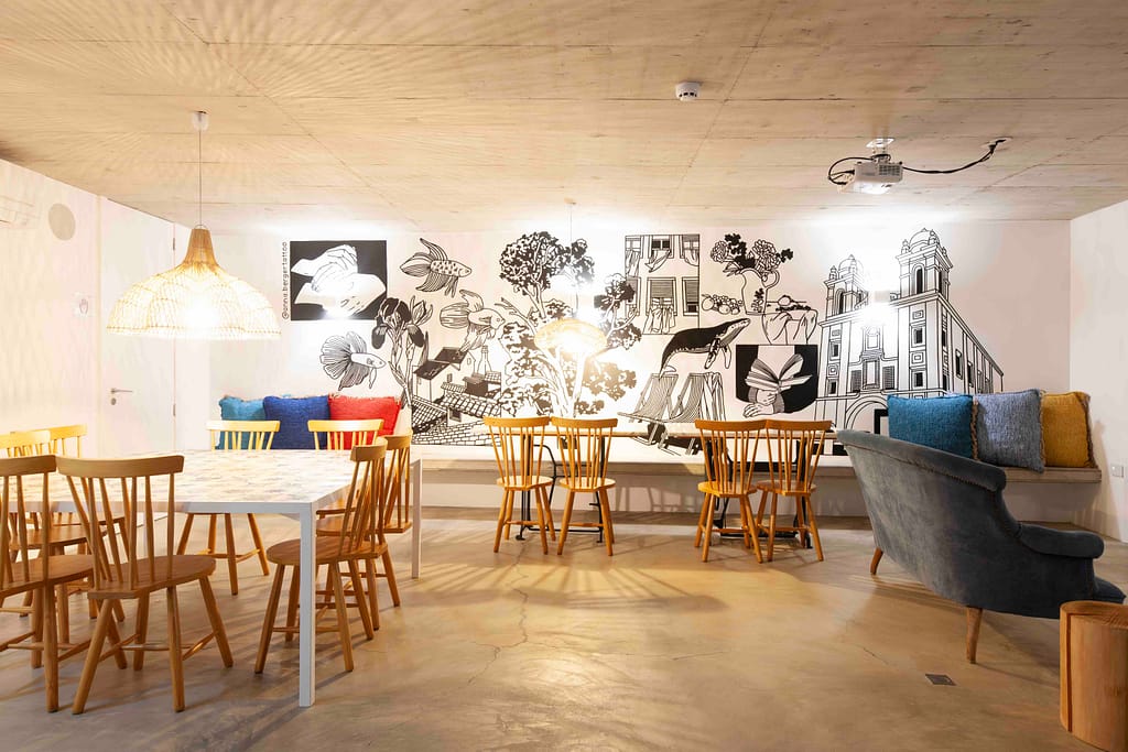 Os espaços comuns do complexo AngrA+ incluem um jardim, um tanque exterior aquecido, uma esplanada e um confortável salão com biblioteca e lareira.