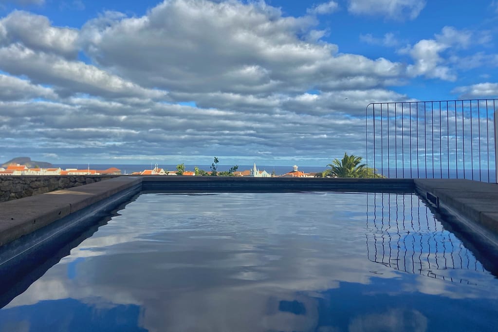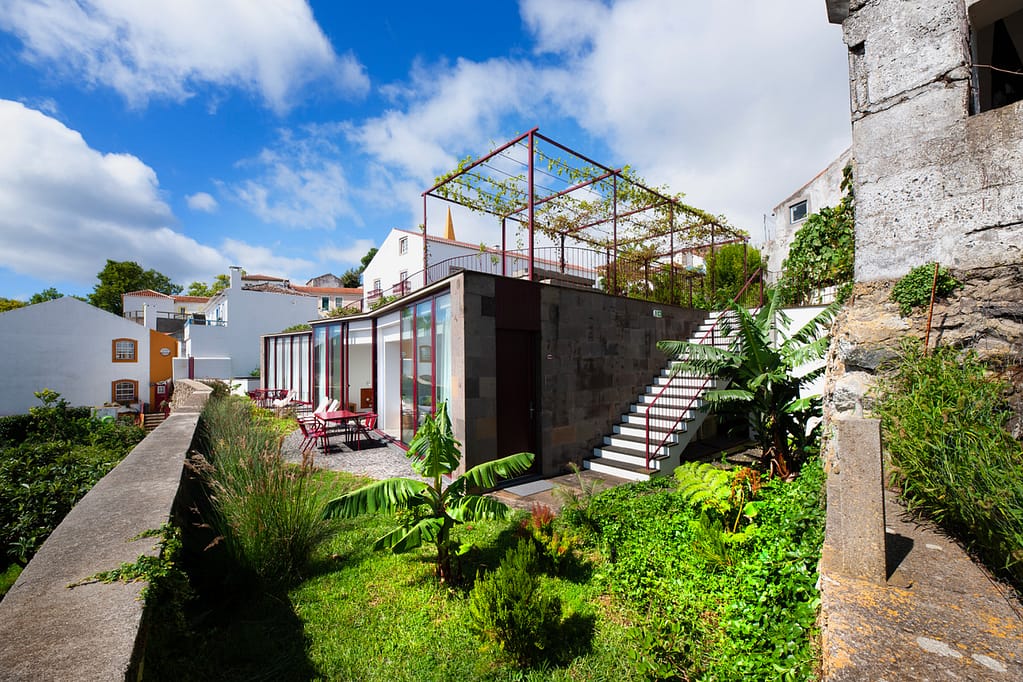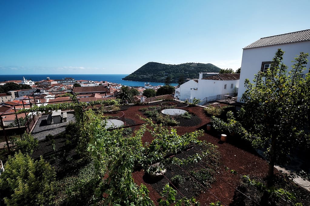Inclui um espaço exterior com 900m2, vista panorâmica de 180 graus, única e deslumbrante, que se estende desde a Baía do Fanal, a Oeste, pelo Monte Brasil, até ao Ilhéu das Cabras, a Este. Debruça-se sobre os telhados e igrejas de Angra do Heroísmo, tendo como horizonte o Atlântico. Os gabinetes de arquitetura envolvidos propuseram a reabilitação do imóvel existente com articulação funcional de um novo, de linhas modernas mas integrado na paisagem.
